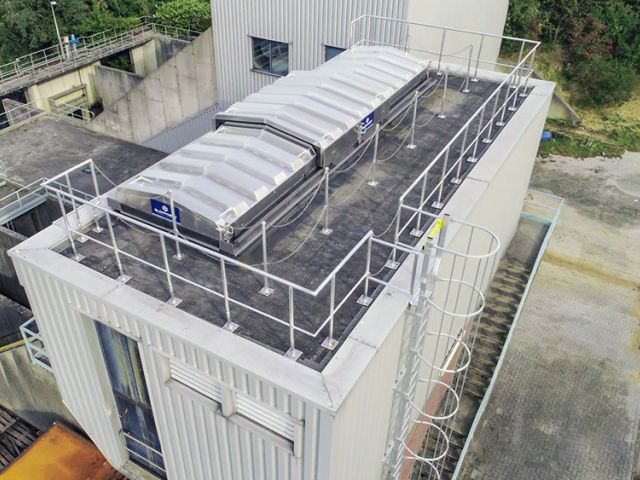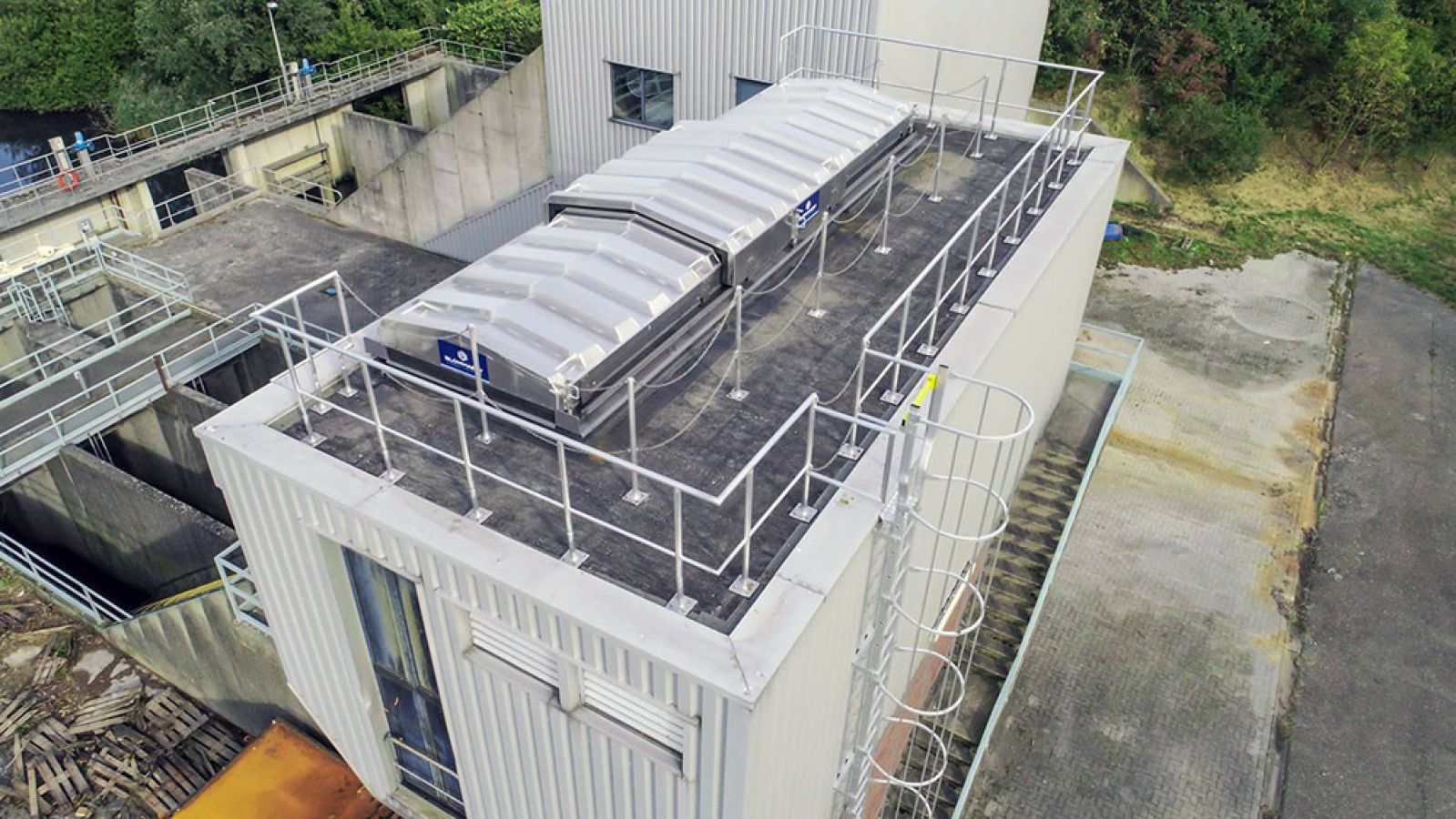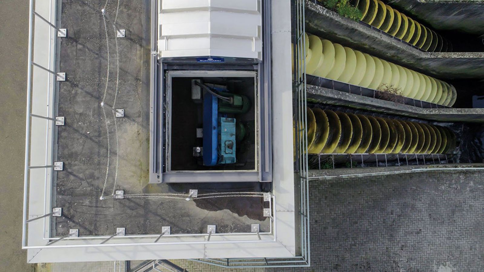 À la demande d'Aquafin, le bâtiment de traitement des effluents existant de la station d'épuration des eaux Anvers-Sud a été modifié. L’élimination du câble de levage existant, la pose de poutres en acier et le placement de 3 volets coulissants sur le toit existant, de manière à permettre de hisser dorénavant en toute sécurité les vis d'Archimède hors du bâtiment. Pour ce faire, trois ouvertures ont été pratiquées dans le toit existant, par lesquelles les vis d'Archimède peuvent être extraites à l'aide d'une grue.