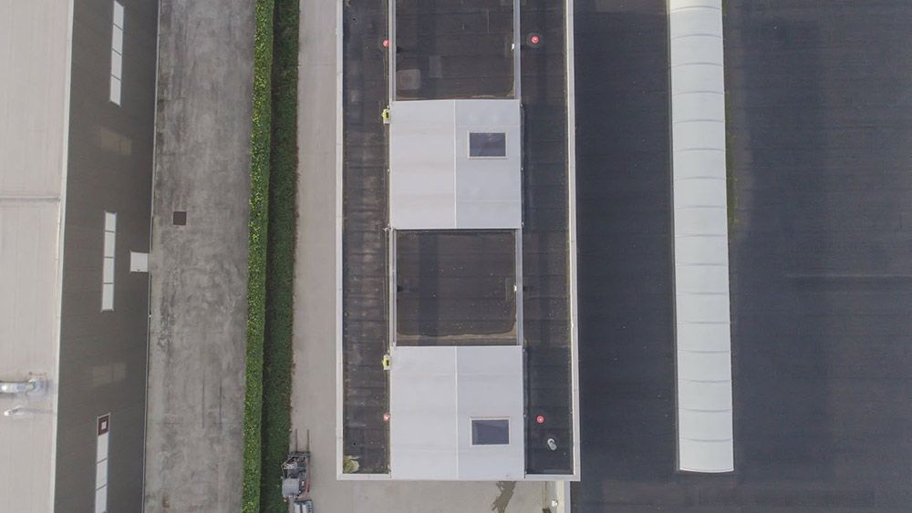 Installation de 2 panneaux coulissants de 5 x5 mètres sur le toit existant. Chaque panneau coulissant est également muni d'une fenêtre translucide fixe destinée à assurer un apport de lumière suffisant dans l'entrepôt. Les panneaux de toiture sont commandés électriquement depuis l'intérieur de l'entrepôt.