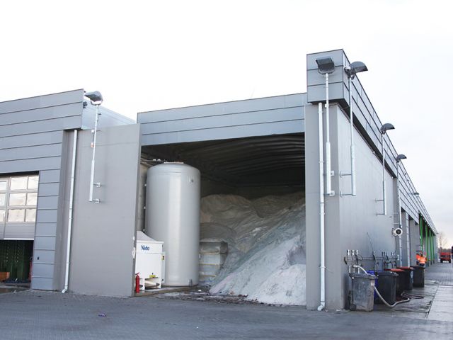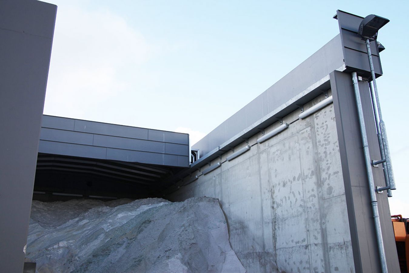 Il existe des cas de bâtiments trop bas, empêchant un camion benne ou encore une citerne de pulvérulents de décharger . La solution c’est alors de faire une ouverture dans la toiture et d’y installer une toiture découvrable. Celle-ci en s’escamotant va permettre aux camions de décharger.